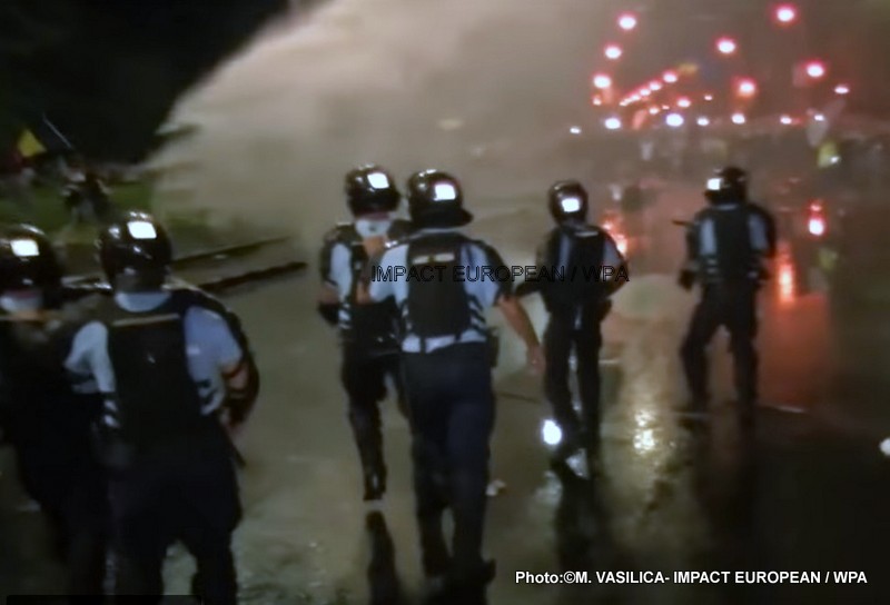 À Bucarest, certains manifestants ont tenté de traverser les cordons de sécurité installés autour du bâtiment du gouvernement. D’autres ont lancé des bouteilles et des pavés sur la police anti-émeute, qui a répondu en utilisant des gaz lacrymogènes et un canon à eau. Un millier de gendarmes et de policiers anti-émeute sont intervenus pour évacuer la place de la Victoire, théâtre d’échauffourées provoquées, selon la gendarmerie, par des « provocateurs ».