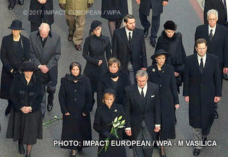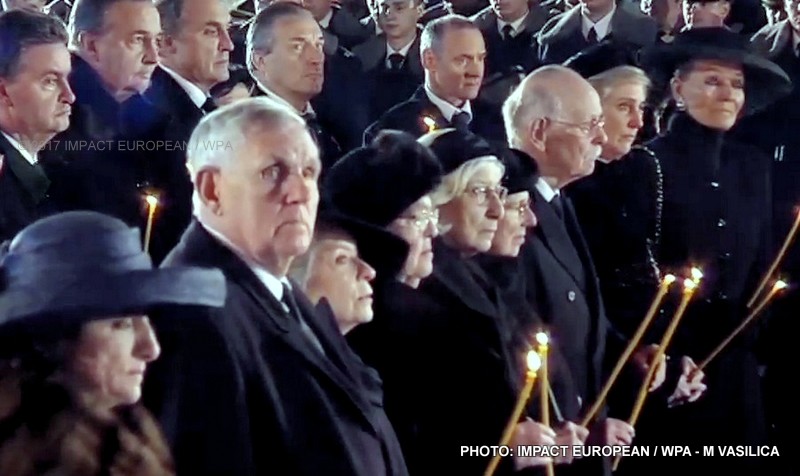 Le cortège a ensuite gagné la Cathédrale de Bucarest où une messe a été célébrée en présence des représentants de plusieurs familles royales d’Europe, dont le prince Charles, Juan Carlos Ier, le grand duc Henri du Luxembourg, Carl XVI Gustaf de Suède, Simeon II de Bulgarie et Anne-Marie de Grèce.