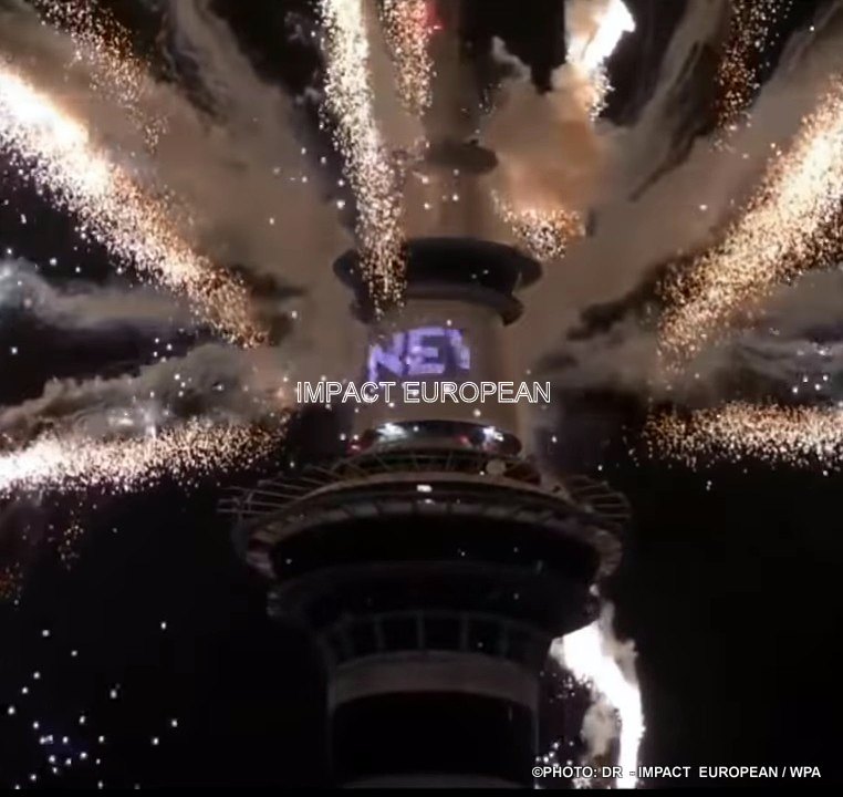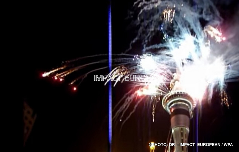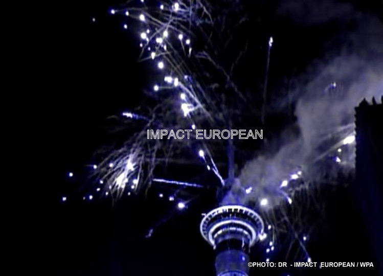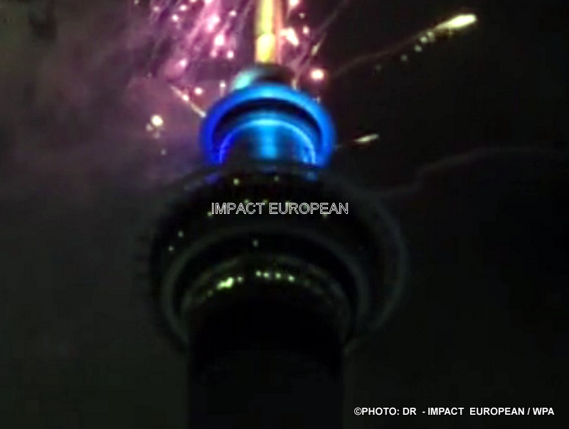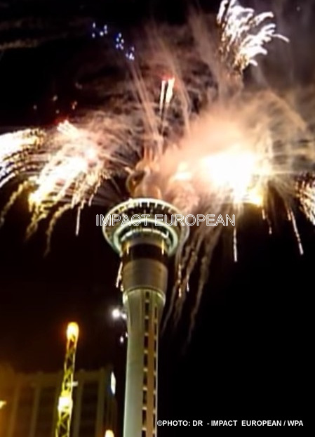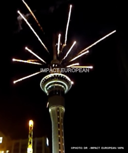 New Zealand a Auckland, un décompte lumineux projeté sur la fameuse Sky Tower, ont été marqués par un feu d’artifice tiré depuis le sommet de cette tour de télévision.