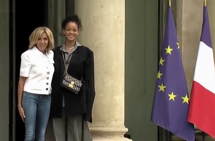 Après Bono lundi, c’est au tour de Rihanna d’être reçue par le président de la République. Accueillie par Brigitte Macron, la chanteuse portait un costume gris recouvert d’une veste noir oversize ainsi qu’une petite pochette Dior en bandoullière. Engagée depuis plusieurs années pour la cause de l’éducation, la chanteuse barbadienne interpelle depuis quelques mois des chefs d’Etat via Twitter. Le 24 juin, elle avait demandé à Emmanuel Macron si la France comptait «s’engager pour le Fonds pour l’Education» dont elle est ambassadrice. Un an plus tôt elle s’était adressée à François Hollande.