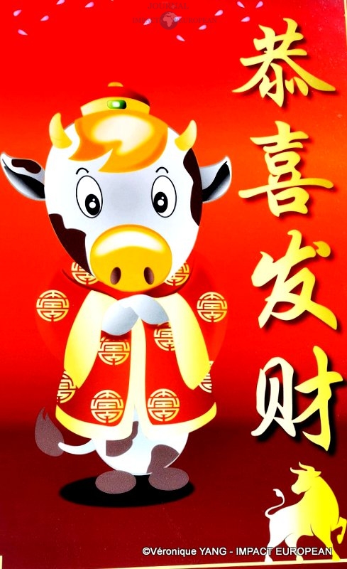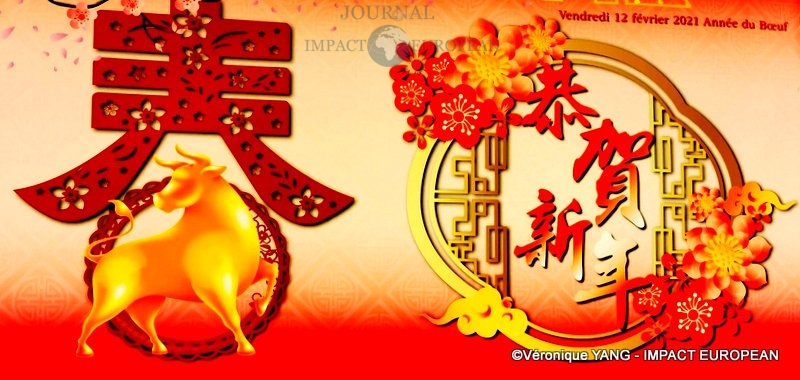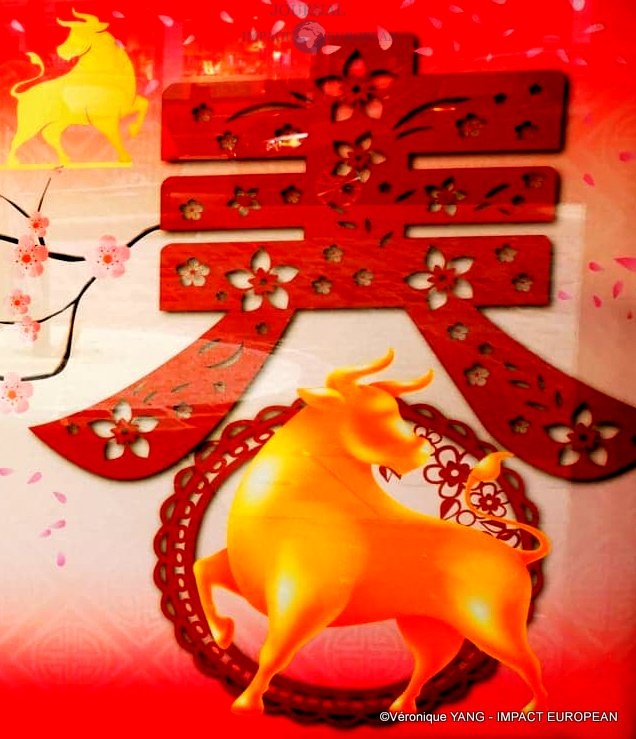 Le jour du Nouvel an chinois (新年) se fête cette année le 12 février. Durant près de 3 semaines, du 4 au 26 février, des événements différents auront lieu chaque jour. Cette année, l’année du « Buffle de métal »( 牛金-niu jin) succède à celle du « Rat de métal »(鼠 金-Shū jin). Elle se terminera le 31 janvier 2022 pour faire place à l’année du Tigre d’eau (虎水-hu shui).