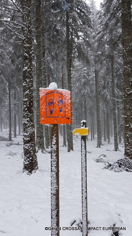 Skieurs de fond et adeptes de raquettes se pressent sur les pistes balisées tracées au coeur des forêts enneigées, chacun sur des pistes séparées.
