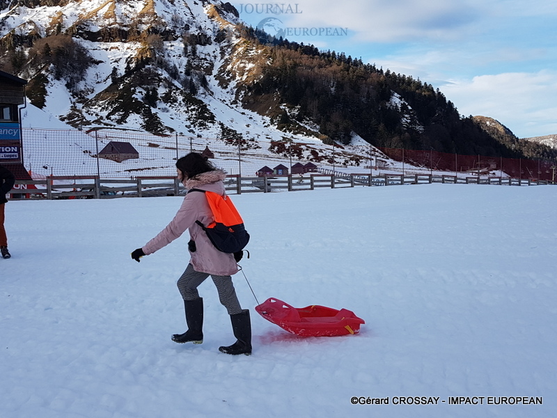 Çà et là, des enfants mais aussi des adultes, s’amusent follement en dévalant les pentes sur des luges à toute allure.