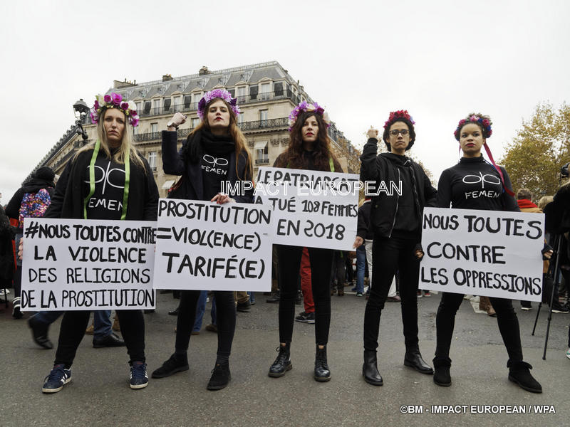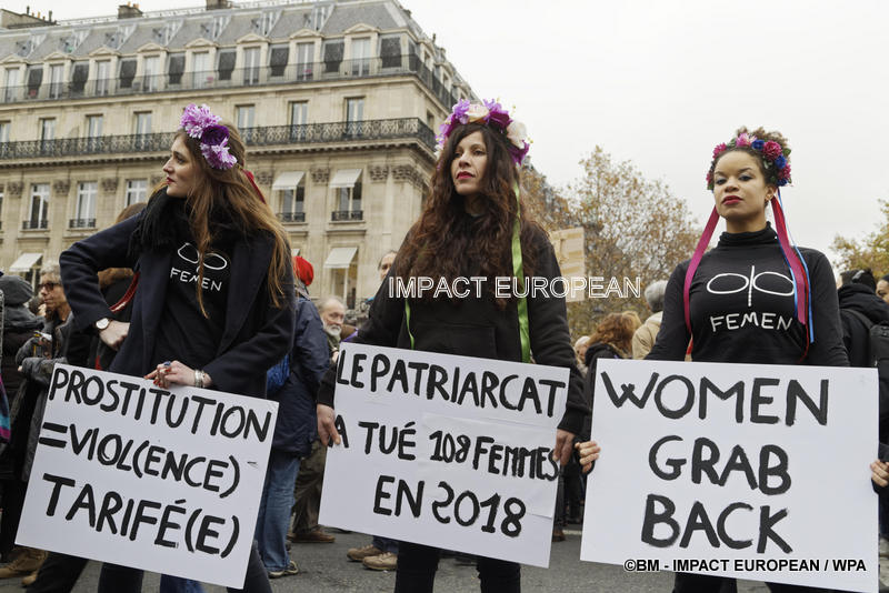 Depuis le lancement de l’appel à manifester le 24 novembre, à la veille de la Journée internationale pour l’élimination des violences faites aux femmes, des centaines de milliers de femmes avaient signé sur Internet pour signaler leur présence sur la cinquantaine de manifestations organisées dans toute la France et ce malgré la mobilisation des « gilets jaunes » qui ont appelé à un rassemblement national le même jour. A Paris, le plus grand cortège avec près de 30 000 (12 000 selon la police) participantes vêtues de violet (contre 2 000 l’an dernier) est parti de la Place de l’Opéra à 14h, direction République. Au total, 50 000 personnes étaient présentes dans toute la France dont 2 400 à Lyon, 1 500 à Marseille, 2 cortèges à Nantes, Montpellier où les « gilets jaunes » ont fait une haie d’honneur aux manifestantes… Les militantes de #Nous Toutes s’étaient aussi réunies à Rome, Athènes ou Genève
