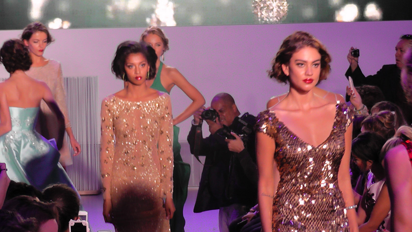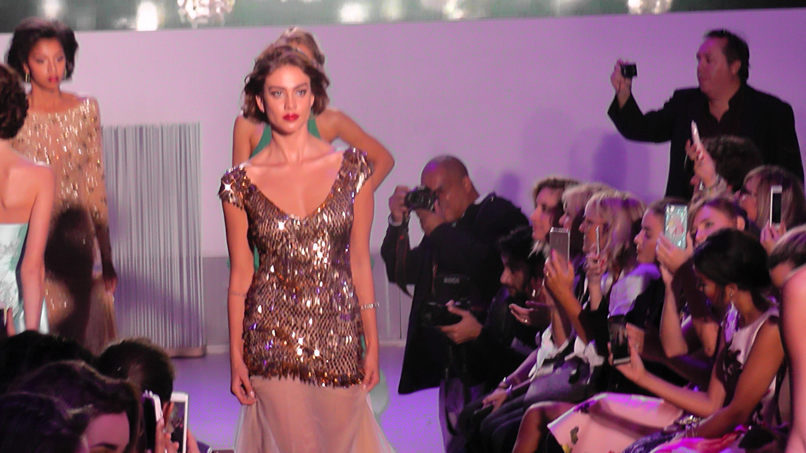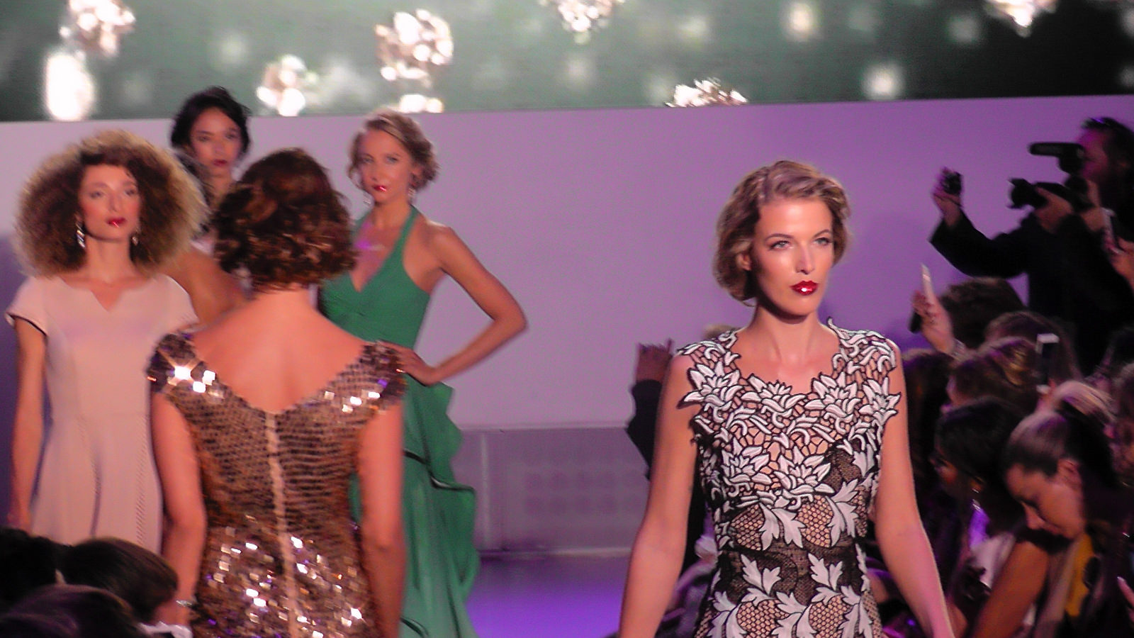 Delphine Wespiser a défilé devant de nombreuses personnalités dont deux autres Miss France, Sophie Thilmann (1998) et Corine Coman (2003).
