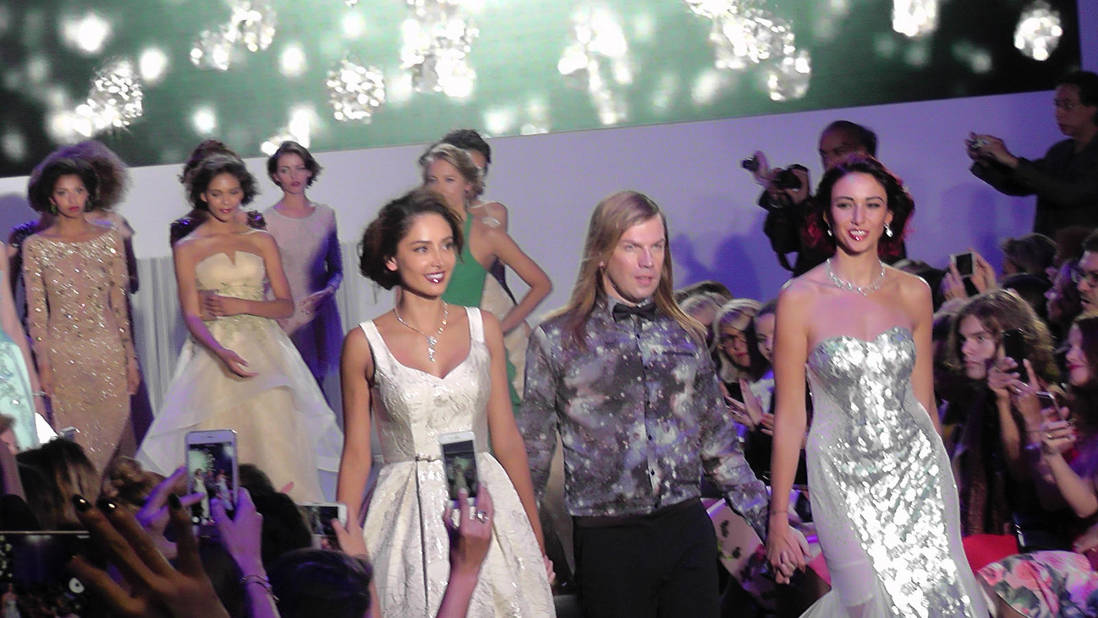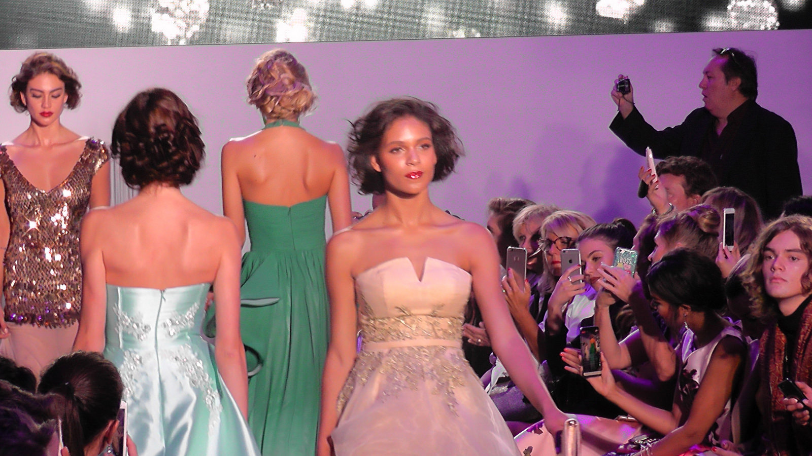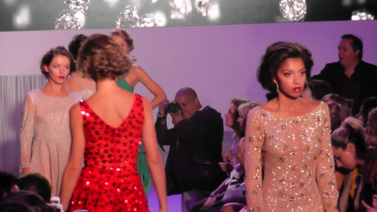 Delphine Wespiser a défilé devant de nombreuses personnalités dont deux autres Miss France, Sophie Thilmann (1998) et Corine Coman (2003).