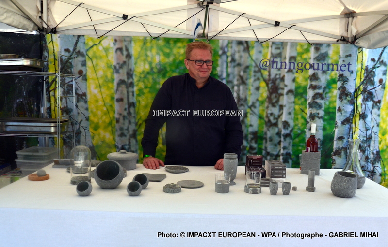 On a pu aussi découvrir sur ce stand la bière ainsi qu’ une gamme de farines et de vinaigres provenant de la maison Malmgard datant du 17ème siècle et de 13 générations et toute une famille de produits typiquement finlandais élaborés à base de cosses de fèves; N’oublions pas les vins : rouge à base de myrtille, rosé de fraises et baies, blanc de tomate et doré, vin cuit aromatisé cardamone. Le stand de produits artisanaux présentait des objets de décoration et culinaires comme des cubes servant de glaçons réalisés en pierre provenant du nord-est du pays et remontant à plus de deux milliards d’années.