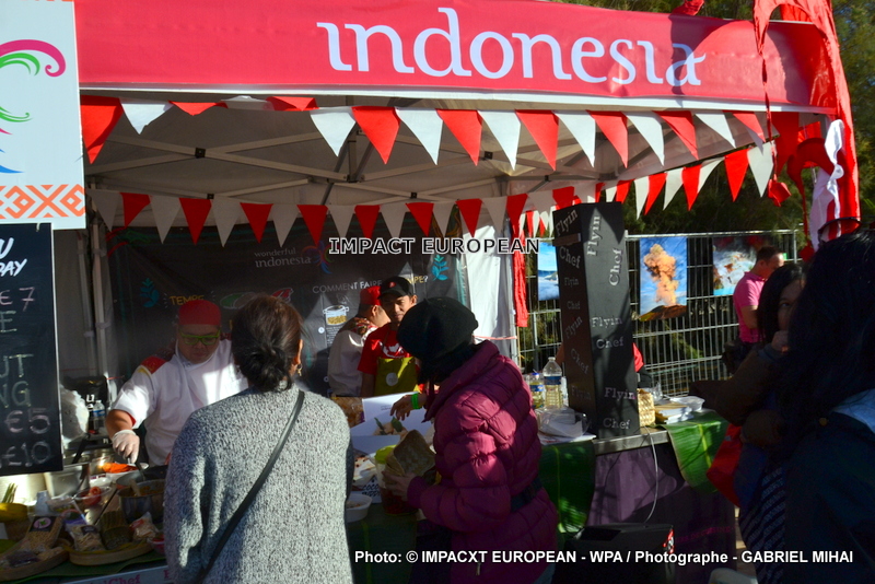 Autre pays, autres coutumes et spécialités culinaires, l’Indonésie était le pays partenaire du Village. A l’entrée du village, le stand offrait un échantillonnage de plats typiques plus ou moins épicés, on a pu aussi assister à un défilé de mode et à un spectacle de danses folkloriques réalisé par de jolies jeunes filles en costumes régionaux.
