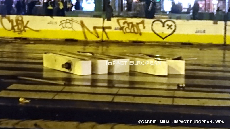« Un petit groupe déterminé à en découdre avec les forces de l’ordre » se trouvait toujours en début de soirée sur la place de la République, en centre-ville, des « gilets jaunes » s’en sont également pris aux décorations de Noël et au mobilier urbain.