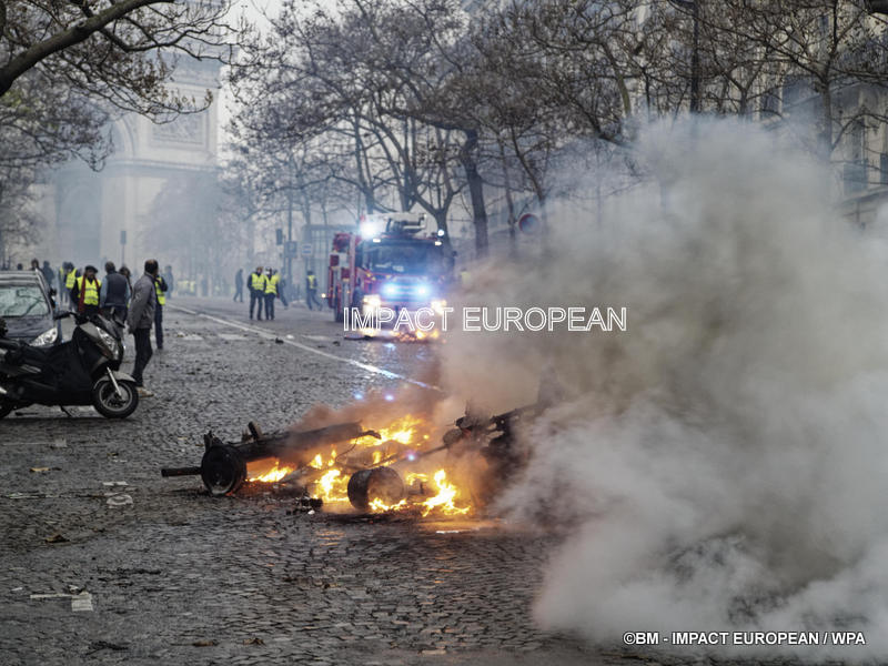 Les manifestants, pour certains encagoulés et masqués, ont lancé des projectiles vers les policiers, qui ont répliqué à grand renfort de gaz lacrymogènes. Certains « gilets jaunes » ont également aspergé des policiers avec de la peinture, comme ont peut le voir dans le diaporama ci-dessus. Des barricades ont aussi été installées près de l’Arc-de-Triomphe.