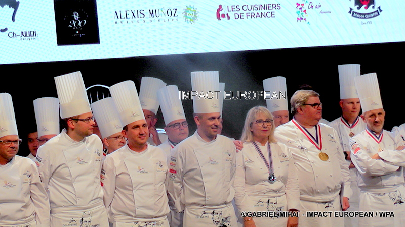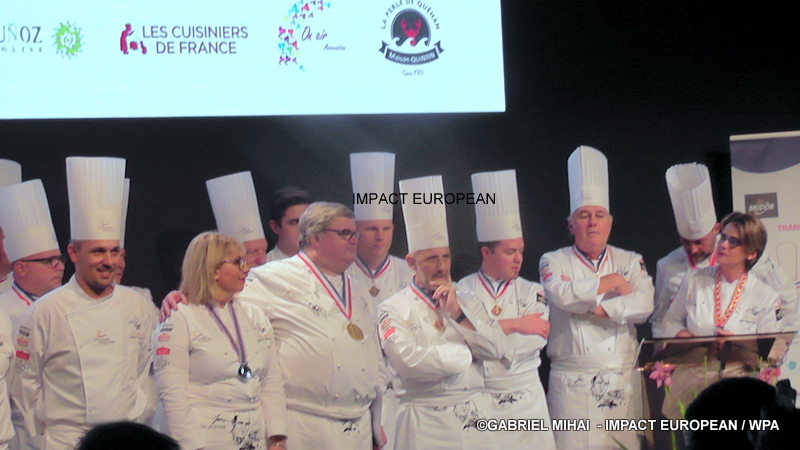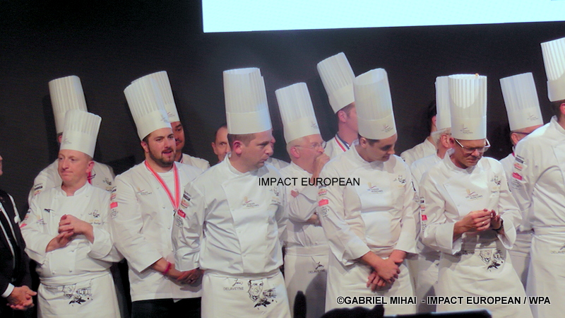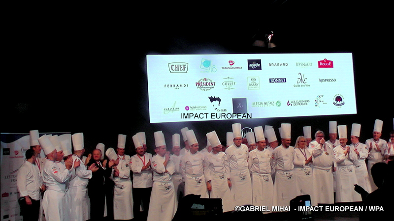 Un jury de qualité composé de 40 MOF sous la présidence de Christian Millet, Président des Cuisiniers de France et dont le Président d’Honneur était le regretté Joel Robuchon a eu la dure tâche de départager les 6 finalistes qui devaient composer une entrée (filet de sandre laqué au beurre d’écrevisse accompagné d’une chartreuse, d’un champignon tourné et d’un accompagnement), un plat (chou farci , pommes Anna et accompagnement au choix) et un dessert ( tarte soufflée : pâte sablée, ganache chocolat, soufflé chocolat). Pour finir cette sélection imposée, un café gourmand et une déclinaison de pomme chantecler.