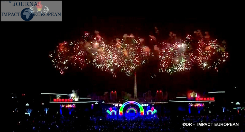 A Pyongyang, une foule s’est rassemblée pour un concert dans le centre de la capitale nord-coréenne aux douze coups de minuit, accompagné de feux d’artifice au-dessus d’une scène éclairée aux néons accueillant une spectacle de danse chorégraphié au millimètre. En Corée du Sud, les habitants ont afflué aux cérémonies rituelles durant lesquelles on sonne des cloches, notamment dans le centre de Séoul en présence de stars locales.