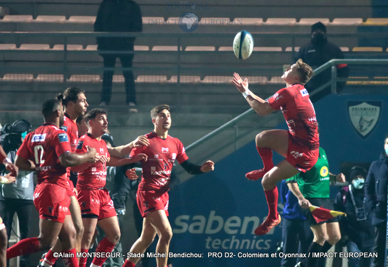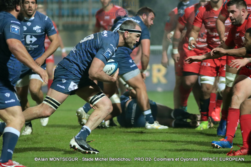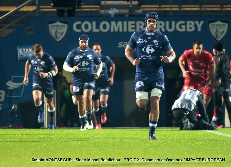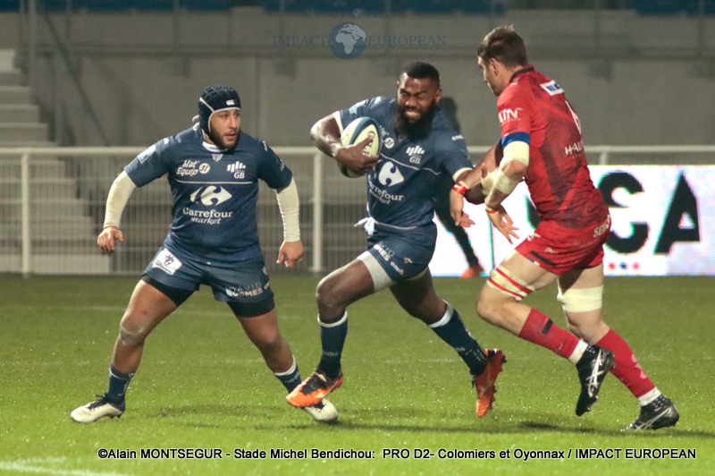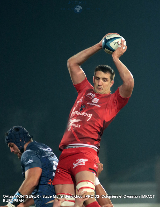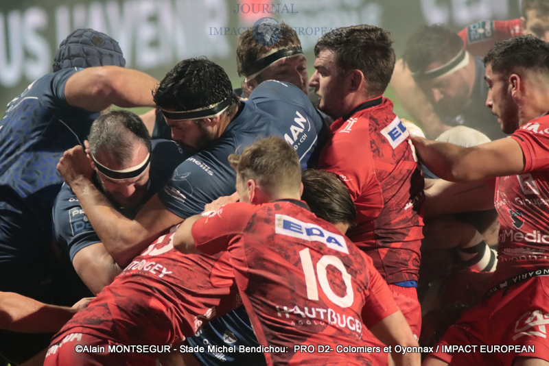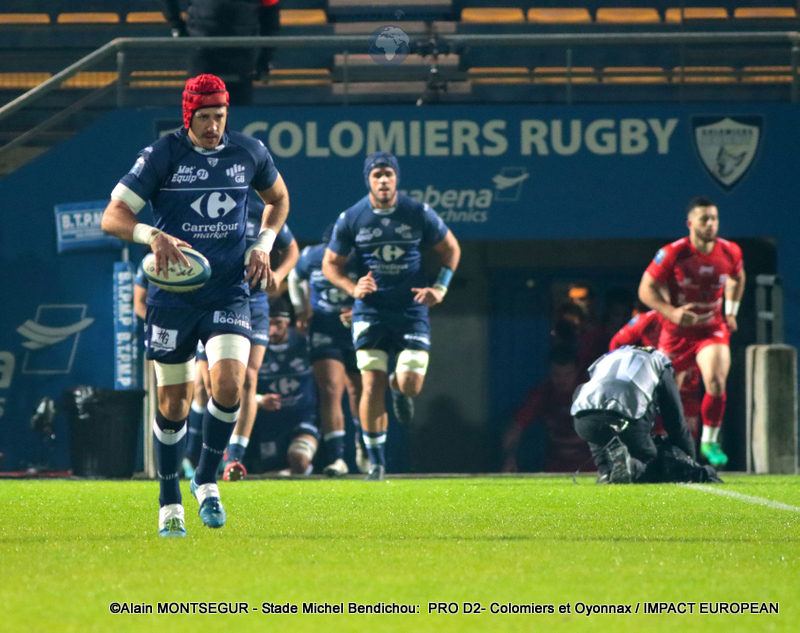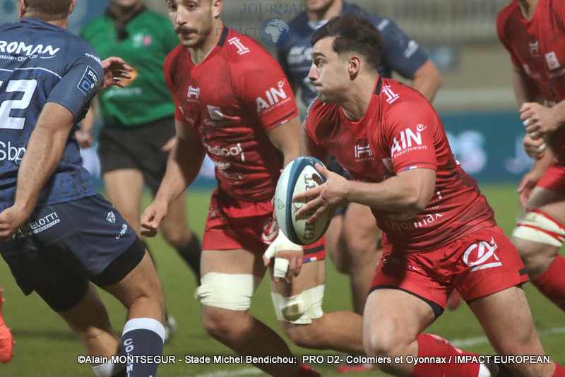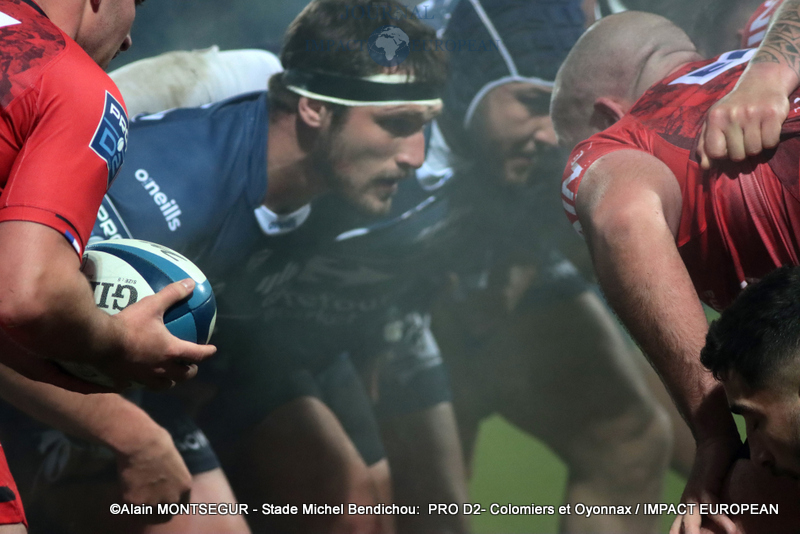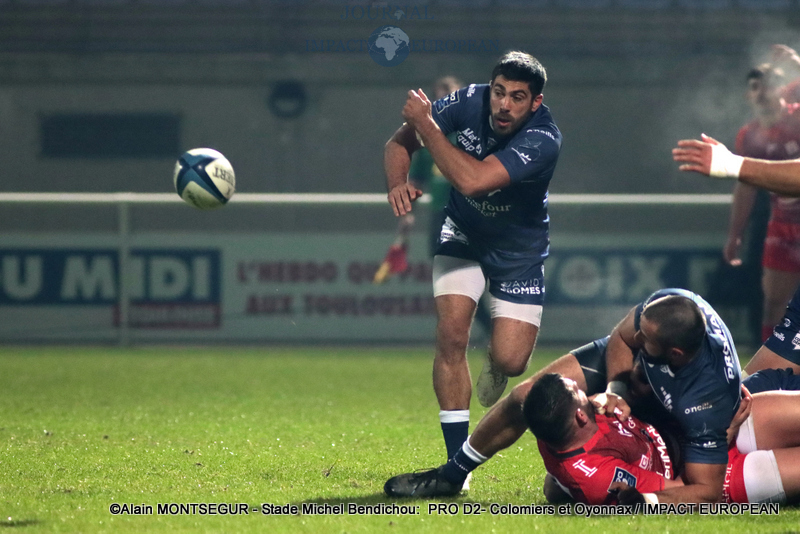 Si Thomas Girard a ouvert le score sur pénalité par l’intermédiaire de la botte de Thomas Girard, la réponse des Oyonnaxiens ne s’est pas faite attendre. Un temps sélectionné pour affronter l’Ecosse avec le XV de France, Sacha Zegueur a profité d’une passe d’Antoine Zeghdar à la suite d’un ballon perdu par les Columérins pour aplatir le premier essai de la rencontre dès la 8eme minute. Il a fallu attendre plus d’un quart d’heure pour voir Colomiers répondre.