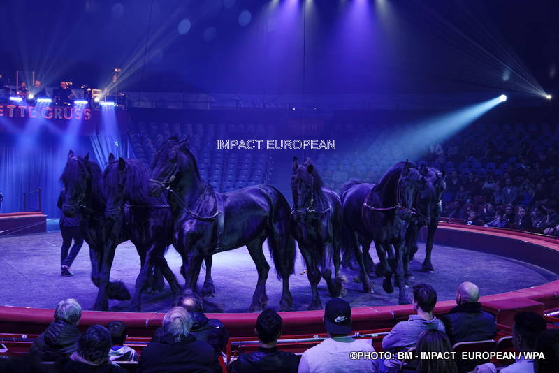 Concernant les animaux, il y a moins de numéros, toutefois cela les cirques avec animaux continuent à attirer d’avantage. Les animaux de cirque ne sont pas des animaux sauvages. En ce qui concerne les fauves, ils proviennent d’élevages spécialisés en provenance d’Allemagne. Bien qu’en Europe, 13 pays ont interdit les spectacles avec des animaux et seront bientôt suivis de 6 autres, le même engouement subsiste. Au Cirque Arlette Gruss, les animaux en fin de carrière vont vivre leur retraite dans la Sarthe à Fontaine St Martin sur une propriété de 24 hectares. Il en est de même pour ceux qui ne sont pas en tournée.