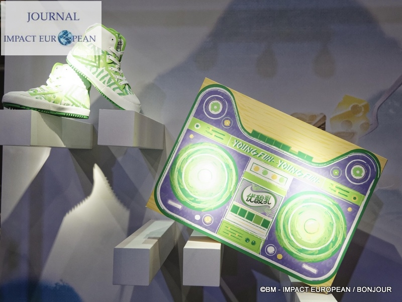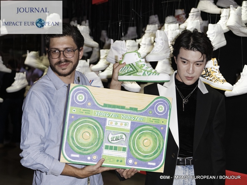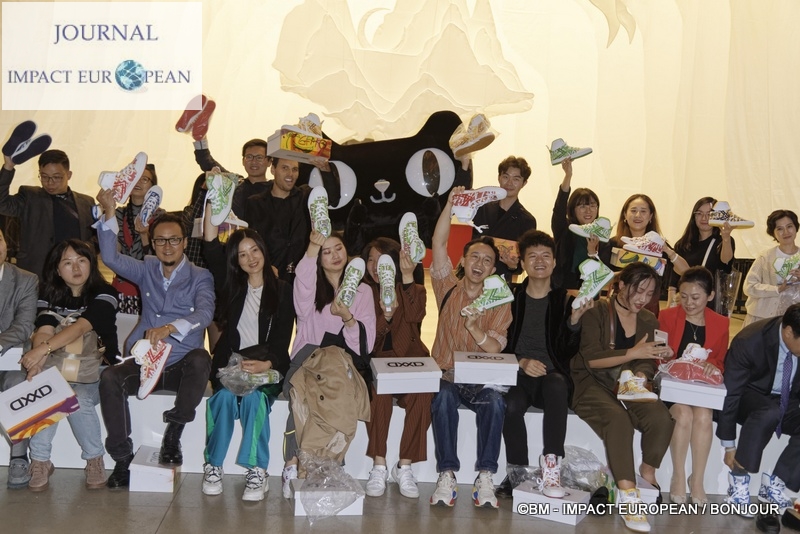 Autre exclusivité, le Shoes Wall-DXXD uniquement constitué de chaussures accrochées de telle façon qu’elles dévoilent le mot » BONJOUR ». Les chaussures sont des créations du designer Eric Bongiovanni (créateur de chaussures pour les marques LV, Chanel et TOD’S) en association avec le fabricant chinois de chaussures de sport tendance Feiyue.