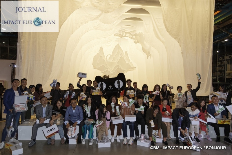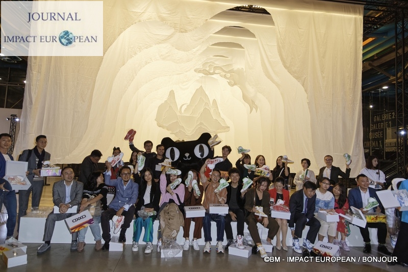 Plus de 600 invités ont été accueillis par Jing Yang fondateur de BONJOUR BRAND, Chris Tung CMO du groupe Alibaba et Serge Lasvignes Président du Centre Pompidou, dans un décor (installation artistique et jeux de lumières) réalisé par des artistes chinois et français, un court-métrage de 5 minutes, soutenu par le mécénat a été tourné puis diffusé en Chine comme support principal de communication. Matthieu POLI, designer français, est le concepteur des installations artistiques et du spectacle son et lumières. La performance créative animée par l’artiste SADE ONE/Eugène Riconneaus et le designer Eric Bongiovanni.