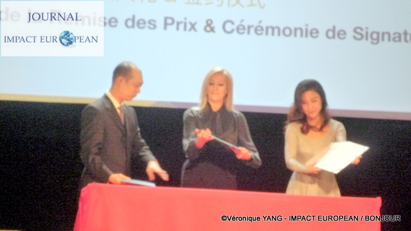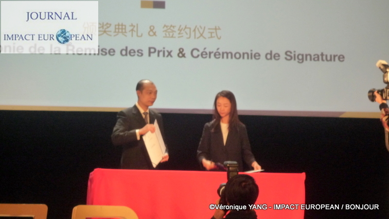 L’ancien Premier ministre, Jean-Pierre Raffarin, a remis les certificats de design à Chacha en compagnie d’Emmanuel Grégoire, adjoint au maire de Paris et à Pascal Morand, président exécutif de la Fédération de la Haute Couture et de la Mode (organisateur de la Fashion Week de Paris), au cours du Forum du sommet Chine-France des marques à l’Opéra le 2 octobre.