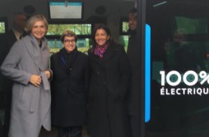 Anne Hidalgo et Jean-Louis Missika, son adjoint chargé de l’urbanisme, de l’architecture, des projets du Grand Paris, du développement économique et de l’attractivité étaient entourés de la Présidente -Directrice Générale de la RATP, Catherine Guillouard, de la Présidente de la région Ile de France et du Conseil d’Ile de France Mobilités, Valérie Pécresse, de la maire du 12ème arrondissement Catherine Baratti-Elbaz et de Charlotte Libert-Albanel, maire de Vincennes ont lancé le nouveau test de service de navettes autonomes entre Chateau de Vincennes(ligne 1) et le Parc Floral puis le bois de Vincennes.