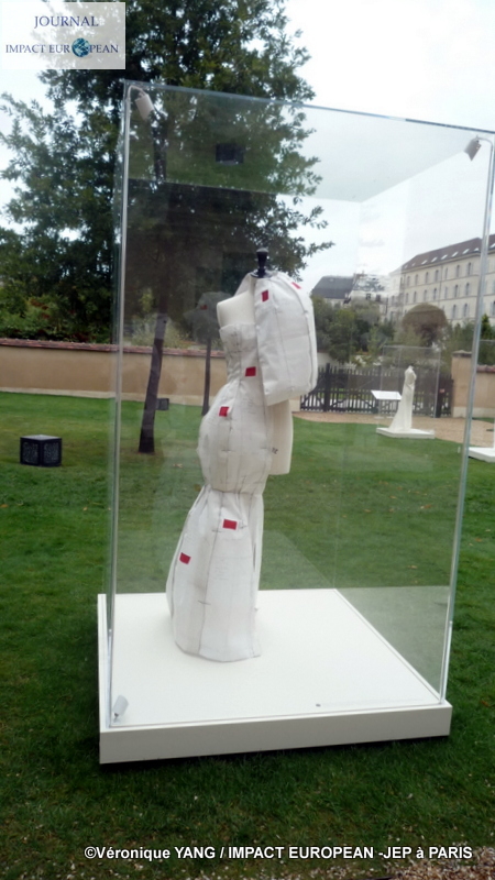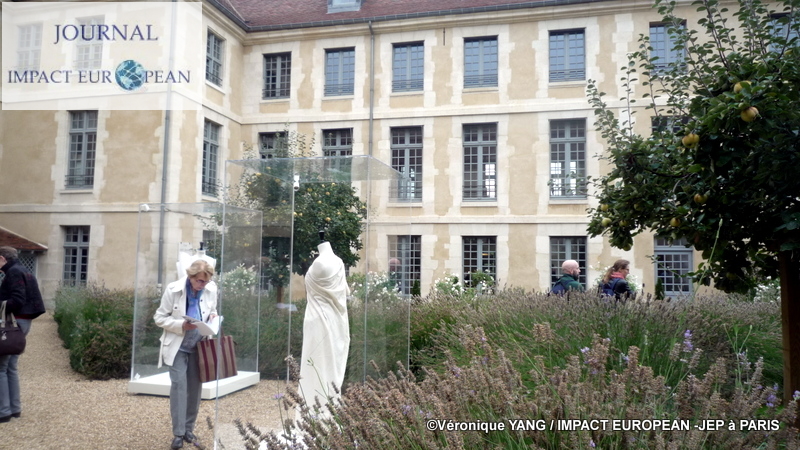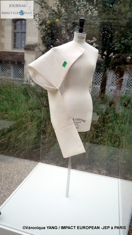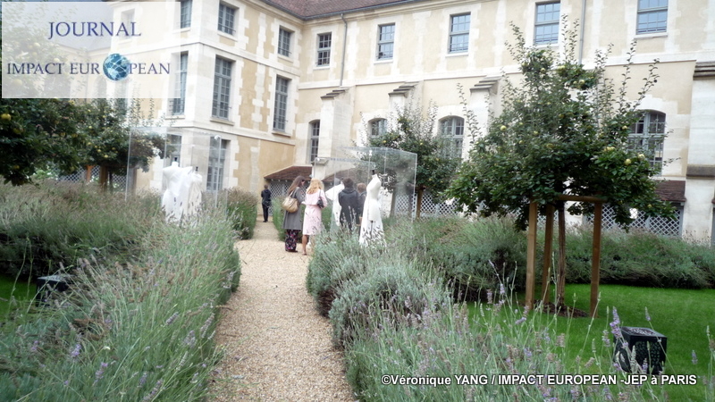 Près de la moitié de l’ancien hôpital Laennec est composée de jardins; historiquement, le site en comportait 14 000m² dont 3 500 m² de potager, ils étaient entretenus par les malades de « l’Hospice des Incurables » et ont été recréés d’après des dessins anciens. On y trouve des espèces végétales qui avaient cours en Europe du XVIIè et du XVIIIè siècle, des arbres fruitiers et des plantes vivaces. Ce lieu idyllique était donc idéal pour accueillir l ‘exposition Balanciaga réunissant les « toiles » en coton brut mises en volumes sur des mannequins et sorties tout droit des archives de la grande maison de couture du créateur Cristobal Balanciaga qui développa sa vision de la couture dans la façon de développer son art à travers le corps, le vêtement, la coupe et les matières qu’il utilisait dont la plus iconique était le gazar , un tissu de soie tissé simple mais fabriqué avec des fils à double torsion tissés, aussi raide que l’aluminium, permettant ainsi de marquer les volume,