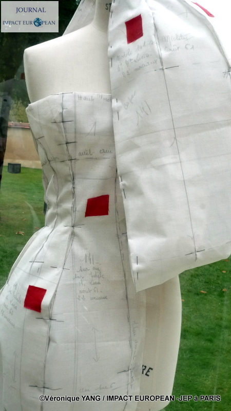 Pour les besoins de l’événement, 18 demi-toiles étaient présentées dans les jardins comme des statues. Pour créer un vêtement, tout commence par un croquis qui se transforme en toile qui en sera la base. Cristobal Balanciaga était le seul à faire lui-même ses toiles. Coco Chanel disait de lui « qu’il était le seul vrai couturier de son temps puisqu’il savait dessiner, couper, monter sur toile, assembler et coudre les vêtements qu’il signait ».