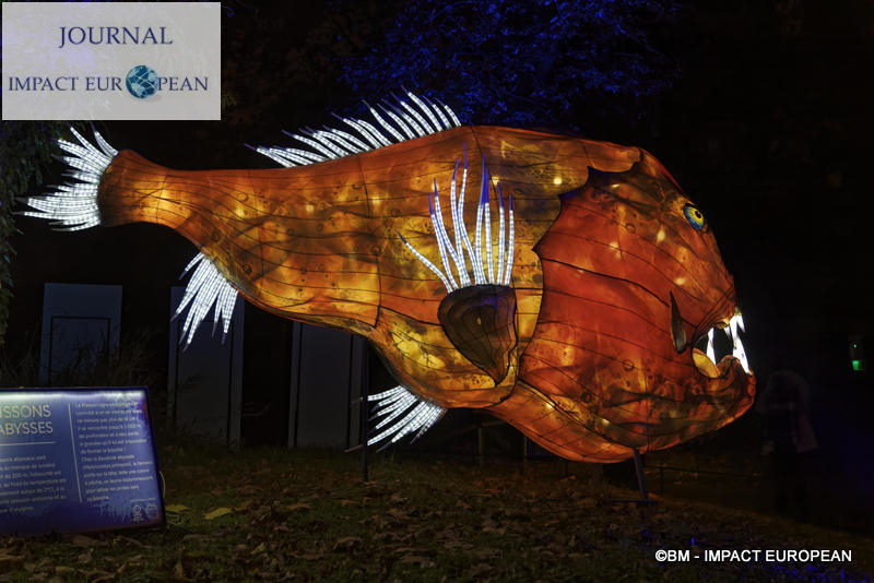Ce nouveau volet s’articule autour des océans et le monde marin. Il complète l’exposition « Océan, une Plongée Insolite » qui se déroule actuellement à la Grande Galerie de l’Evolution. Ce nouveau parcours nocturne, « Océan en voie d’illumination« est ouvert au public chaque soir à partir de 18h, jusqu’au 19 janvier (à l’exception des 24 et 31 décembre) . Ravissement pour les yeux, il émerveillera petits et grands tout en mettant l’accent sur les risques écologiques que subissent les fonds marins (déchets, pollutions d’origine agricole ou industrielle…agressions des milieux marins et littoraux, disparition de la faune océanique).