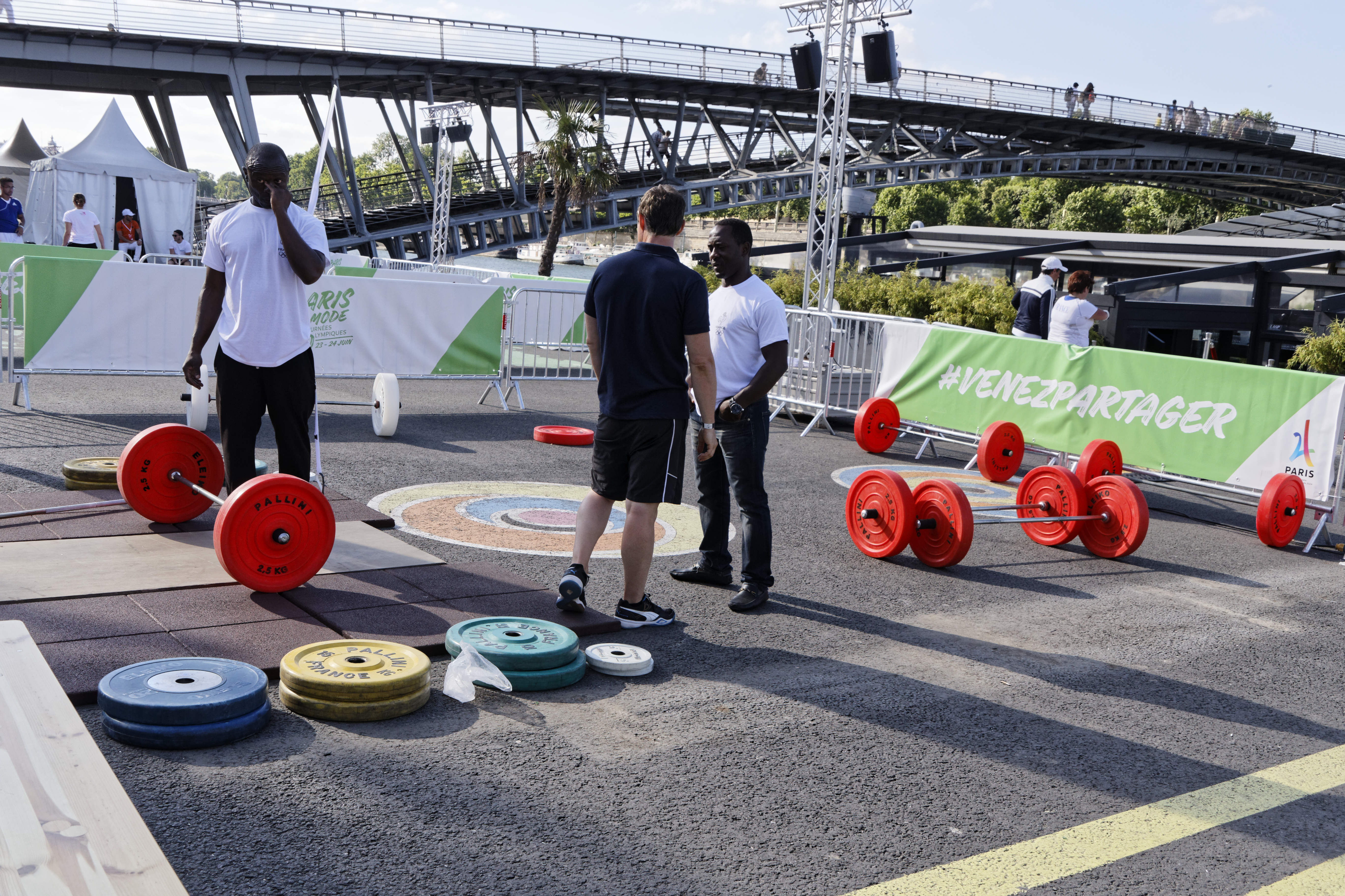 Pour l’occasion, une piste d’athlétisme flottante a été installée sur la seine au niveau du pont Alexandre III, ainsi qu’un plongeoir depuis ce même pont, ou encore des trampolines dans le Petit Palais.